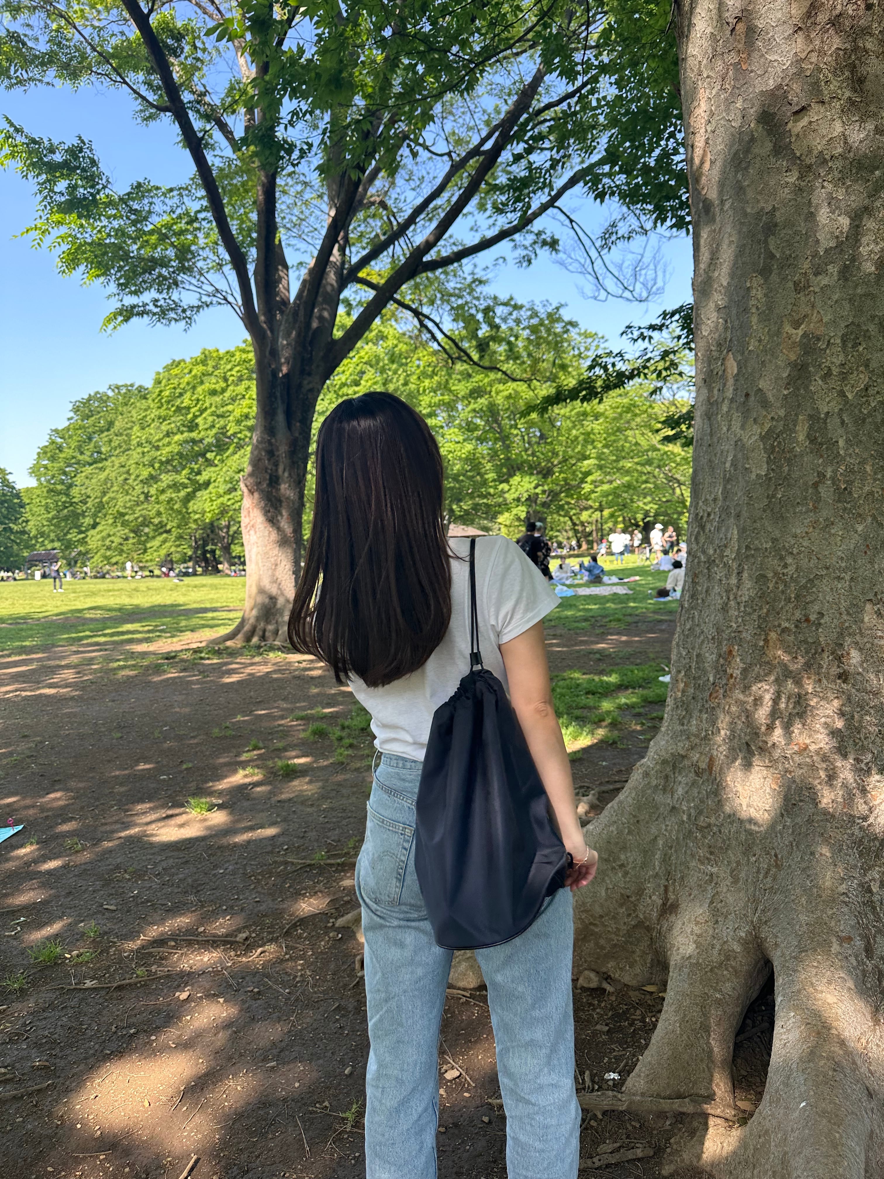 両手はあけたい、でもいわゆるリュックが印象付けるラフさが苦手。そこで、どこかクラシカルなナップサックの形にしました。
